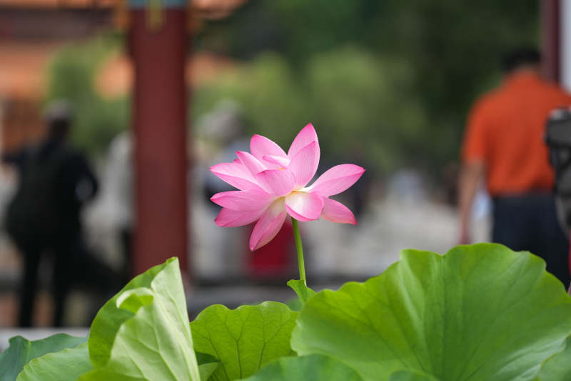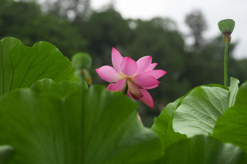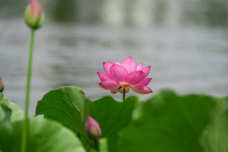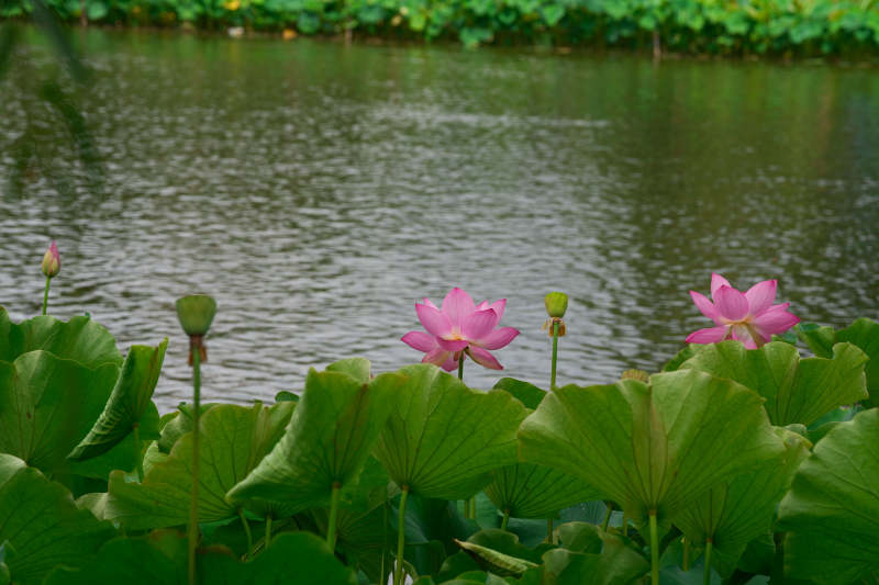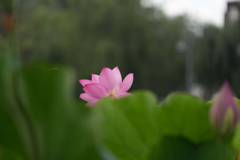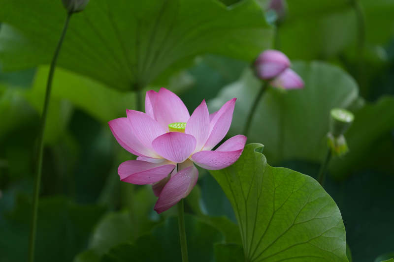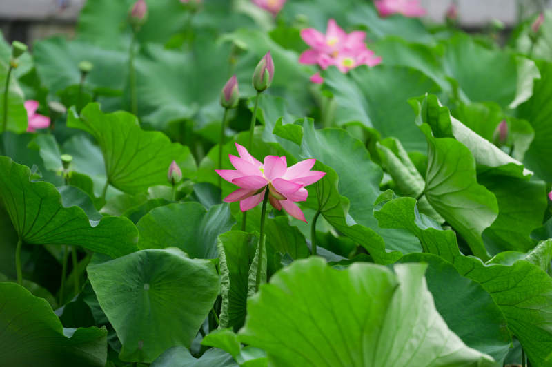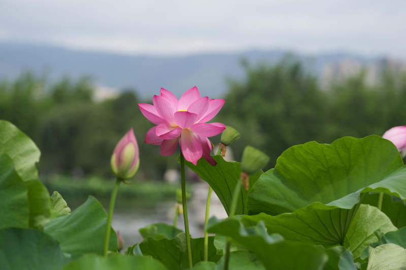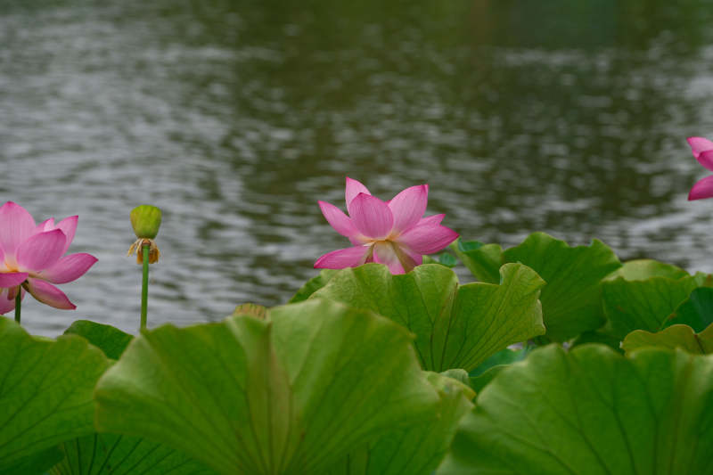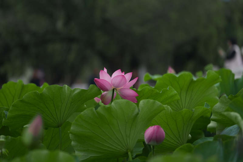 粉荷绽放 绿叶相伴