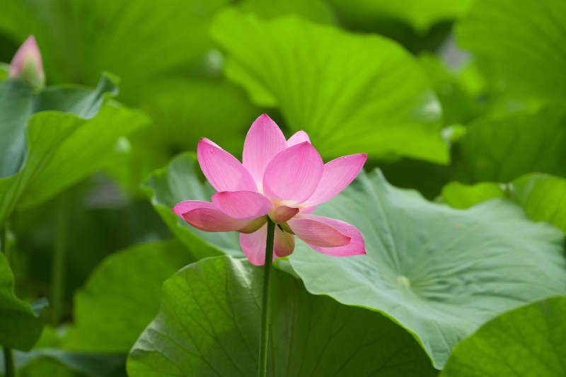 池塘中的粉色莲花盛开