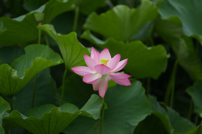 粉莲静绽绿叶间
