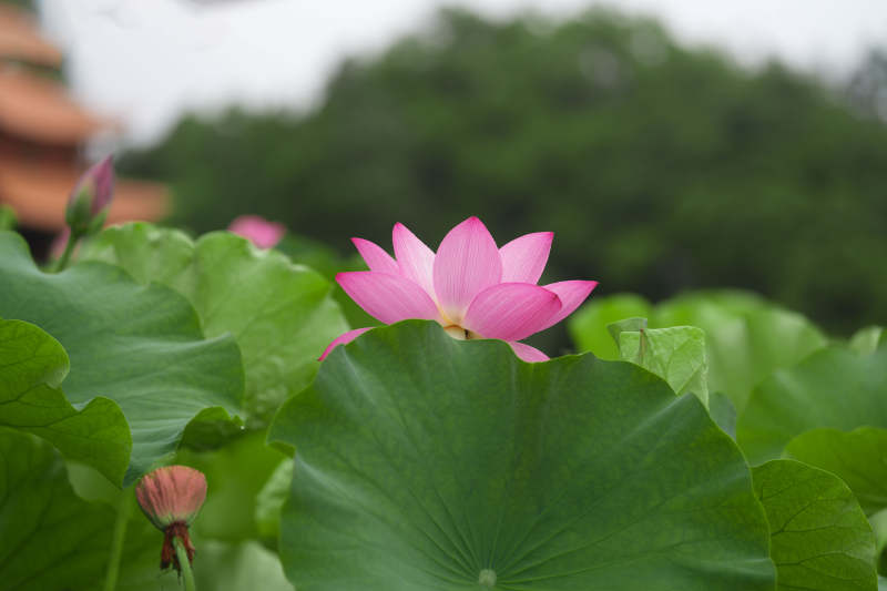 荷塘映古寺 静谧之美