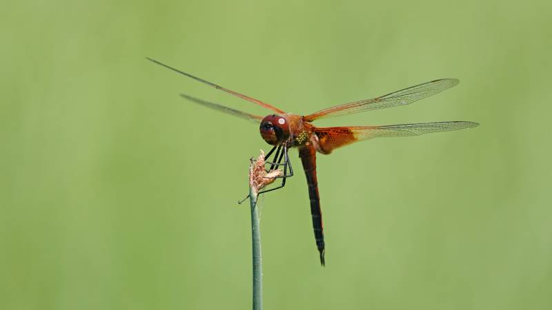橙色蜻蜓栖息枝头