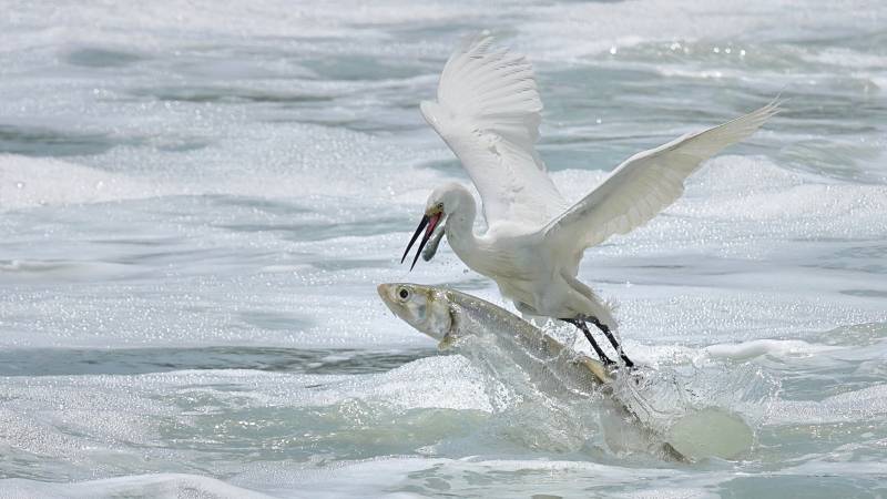 池鹭捕获大鱼瞬间