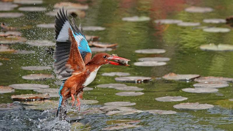 池塘鹭鸟捕食瞬间