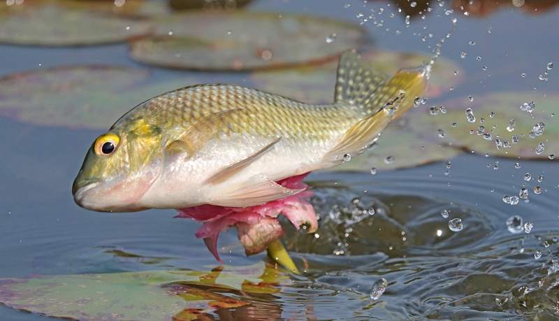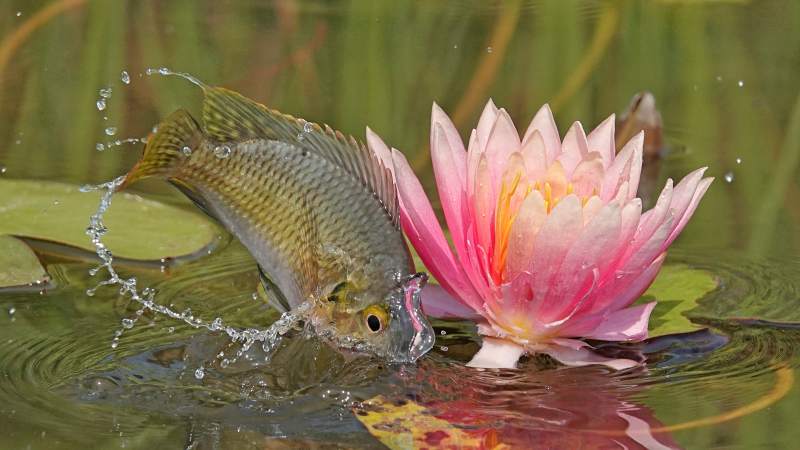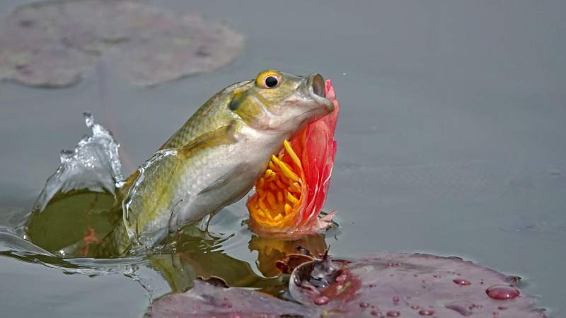 鱼跃水面捕食花蕊