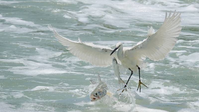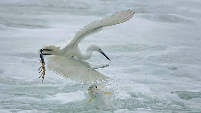白鹭捕鱼 瞬间定格