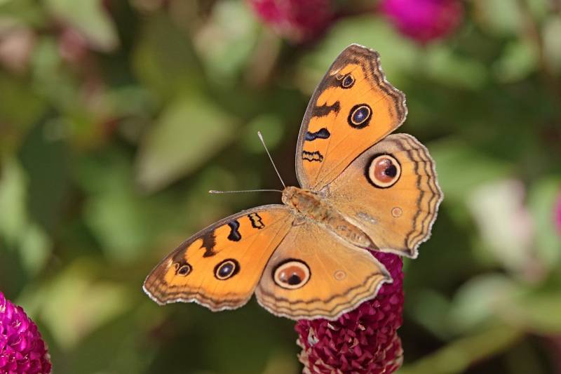 橙色蝴蝶停驻花上