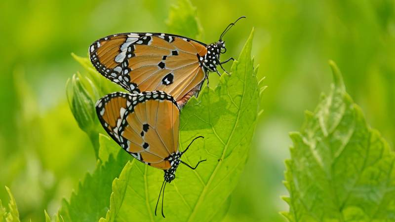 双蝶共舞绿叶间