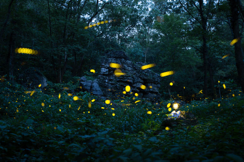 萤火虫在森林中闪烁