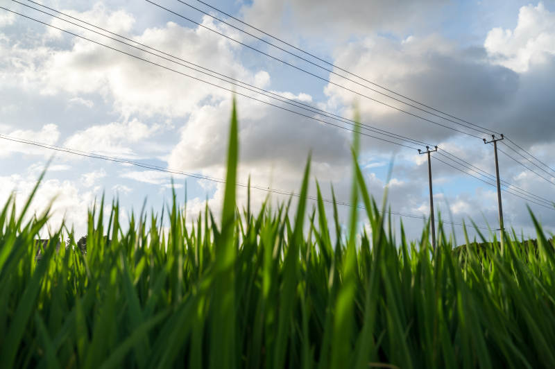 绿草蓝天电线杆