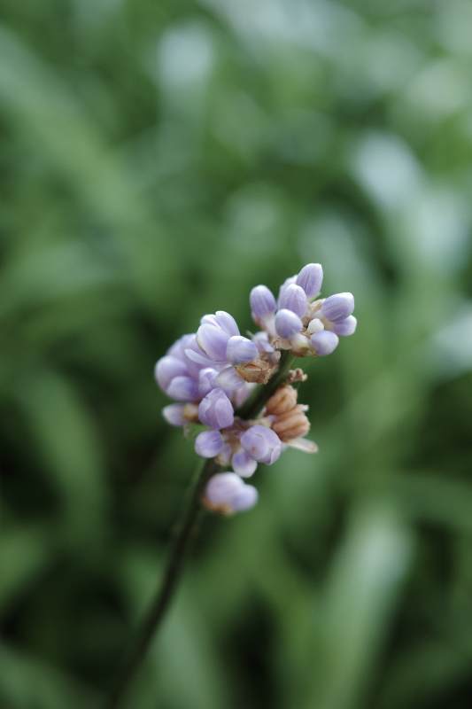 紫色小花在绿叶中绽放