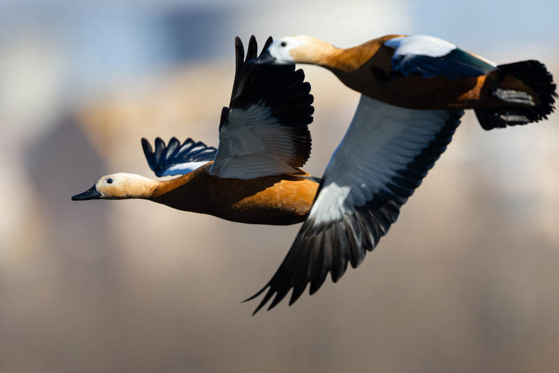 飞翔的赤麻鸭
