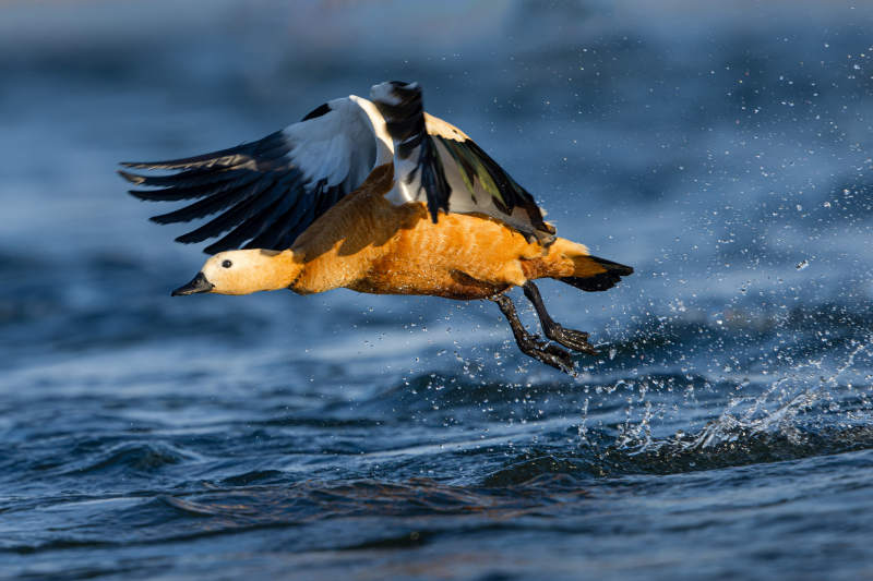 赤麻鸭振翅起飞