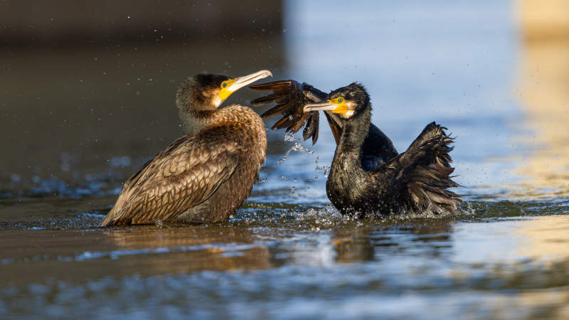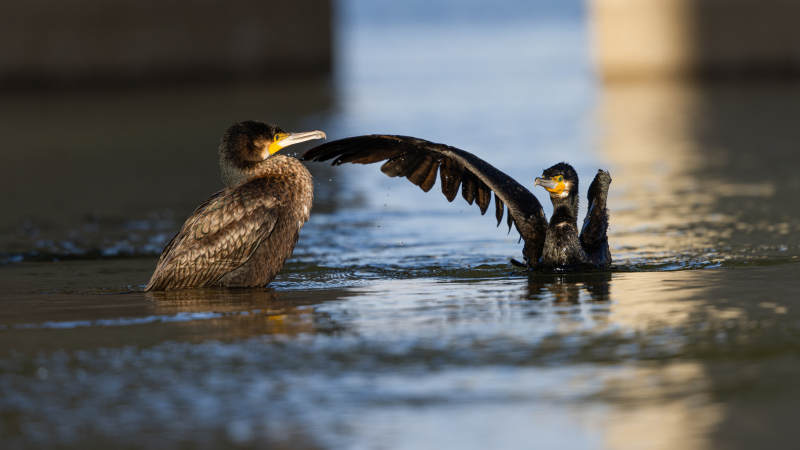 水鸟展翅戏水 普通鸬鹚 吉林市