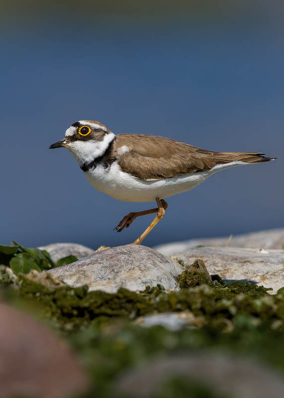 环颈鸻在岩石上行走