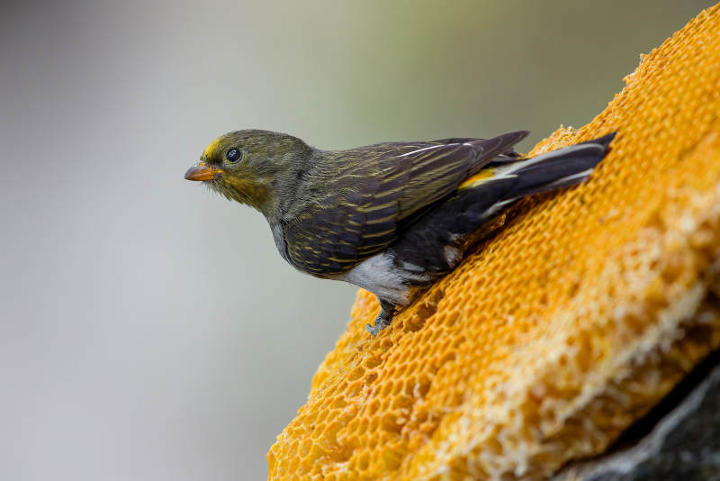小鸟栖息蜂巢上 黄腰响蜜鴷 云南保山