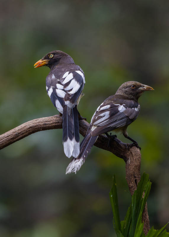 两只白翅蓝鹊栖息枝头