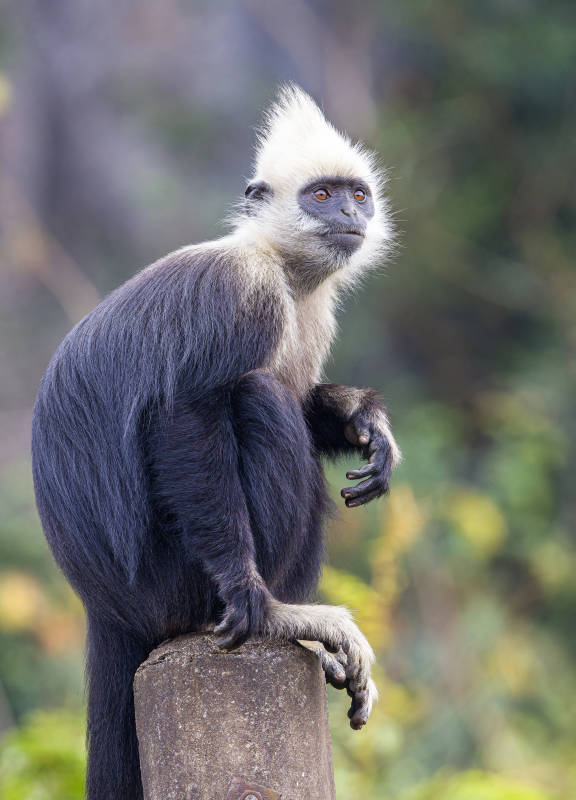 白头叶猴静坐树桩上