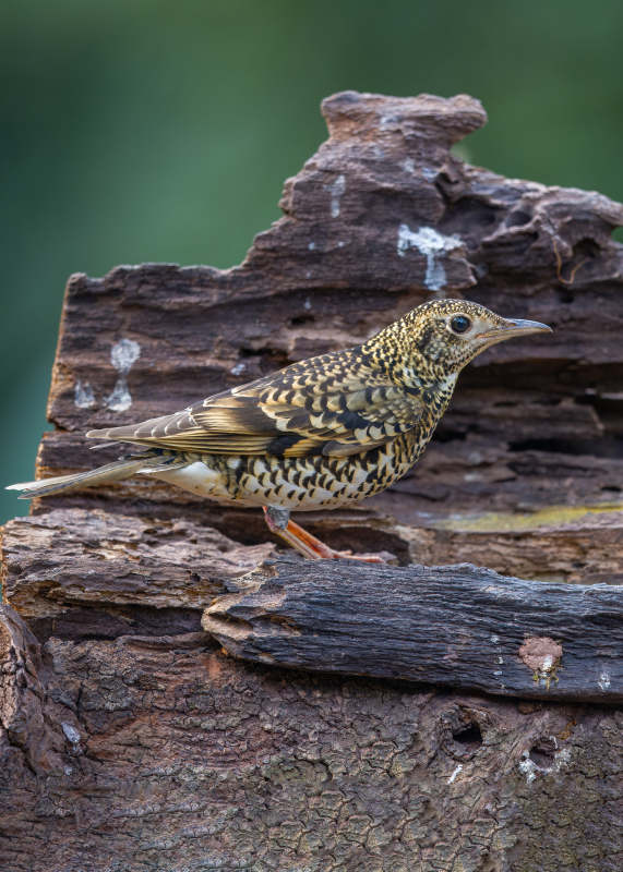斑点鸟栖息于树桩上