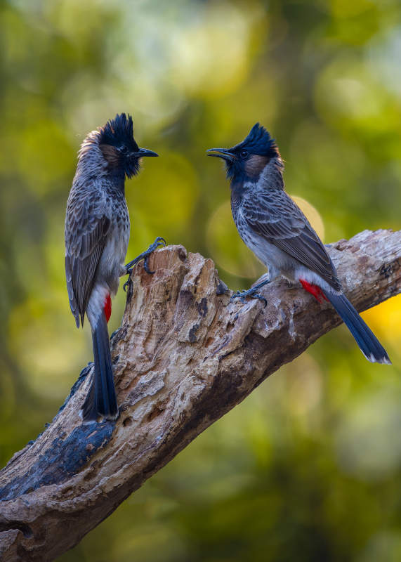 双鸟栖枝赏红花,广西弄岗,红顶鹛