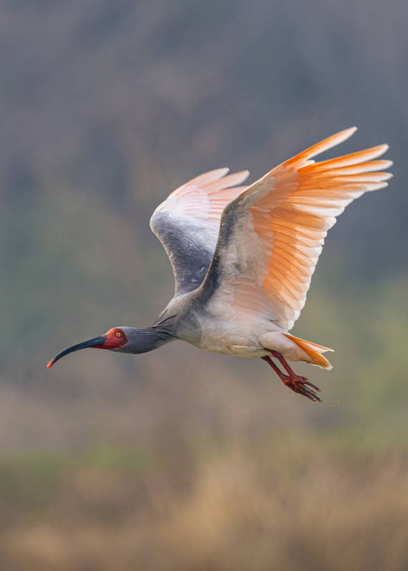 朱鹮展翅飞翔瞬间