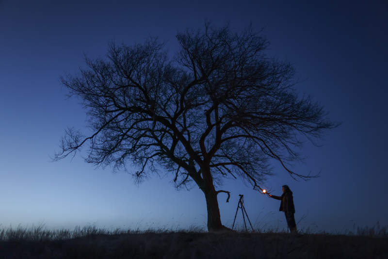 夜幕下的树与摄影师