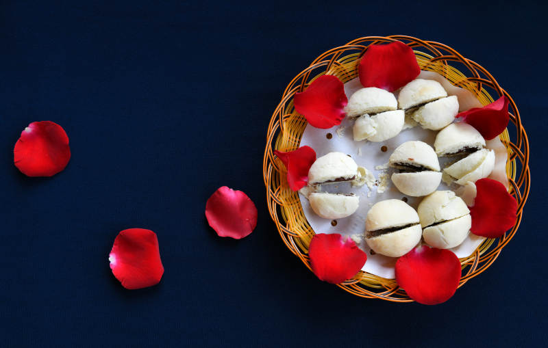 玫瑰花瓣伴甜点