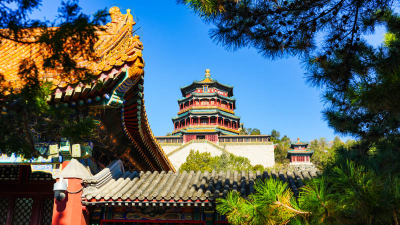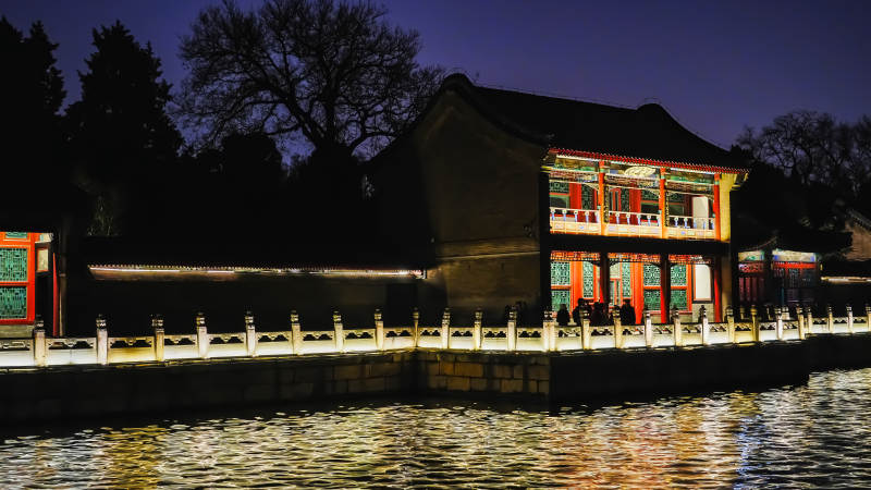 廊坊霸州胜芳古镇夜色中的古塔与庙宇