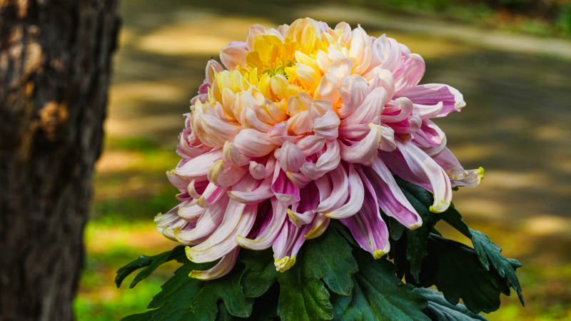 秋菊绽放树旁