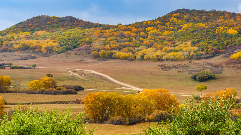 乌兰布统秋日山林金黄景