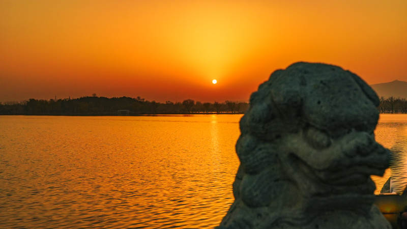 颐和园夕阳下的石狮