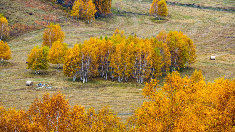 乌兰布统秋林牧羊图