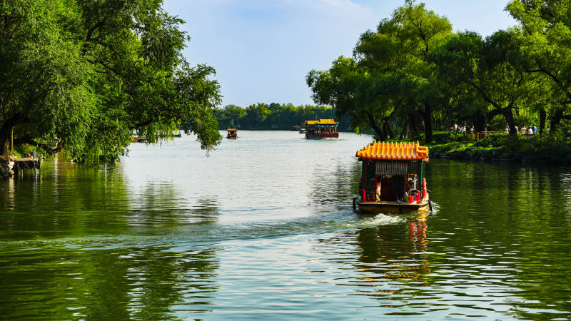颐和园湖上画舫 绿树成荫