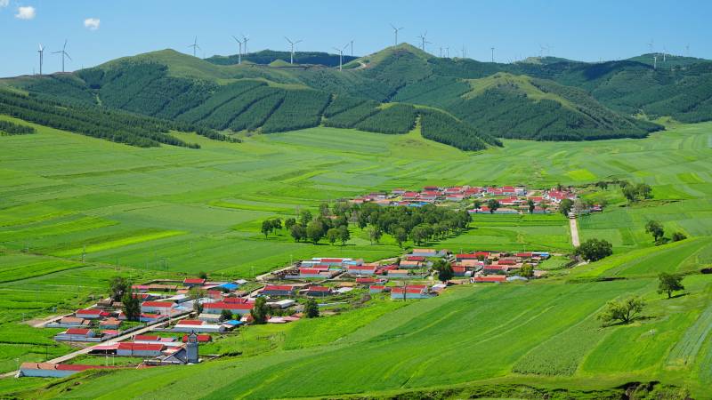 青山绿水间的乌兰布统乡村风光