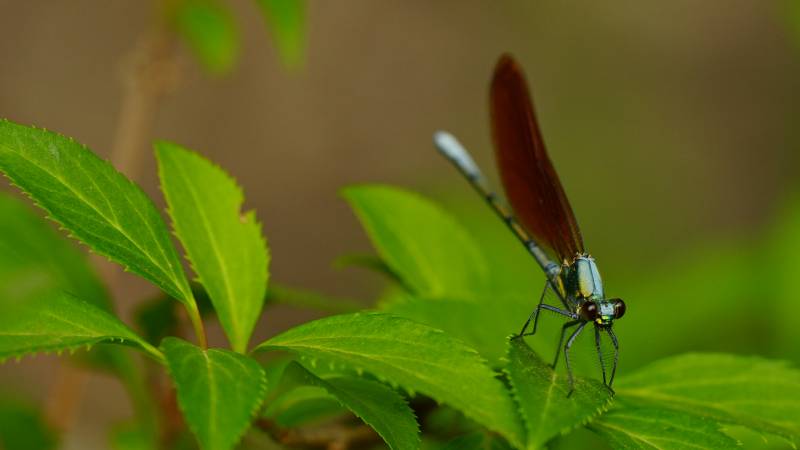 绿叶上的红色蜻蜓