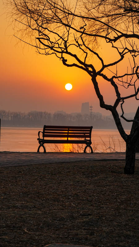 颐和园西堤夕阳下的静谧湖畔