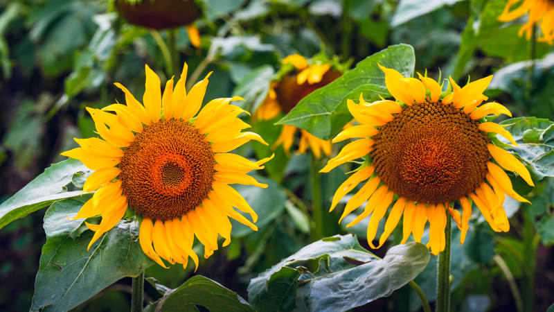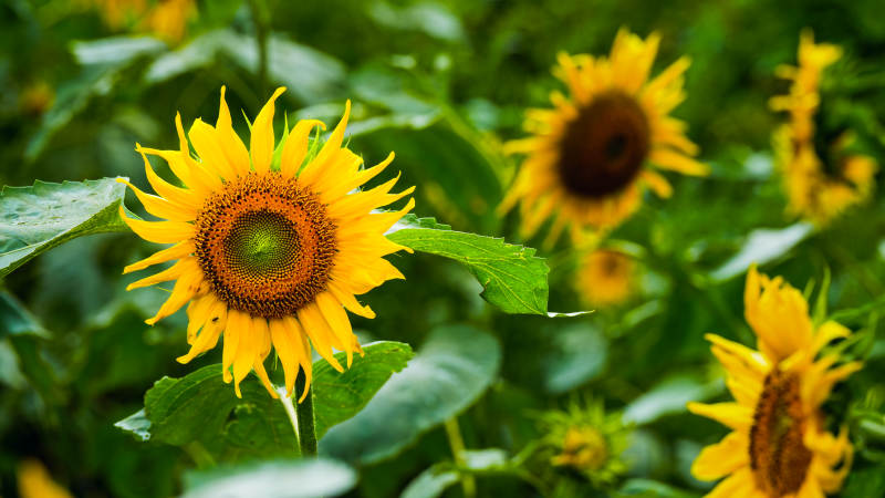 向日葵在绿叶中绽放