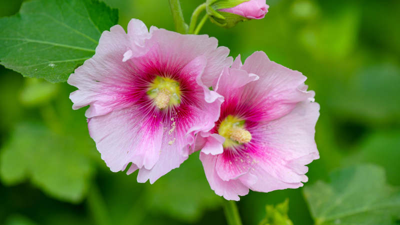 蜀葵花绽放于绿叶间