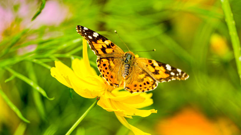 蝴蝶停驻黄色花朵上
