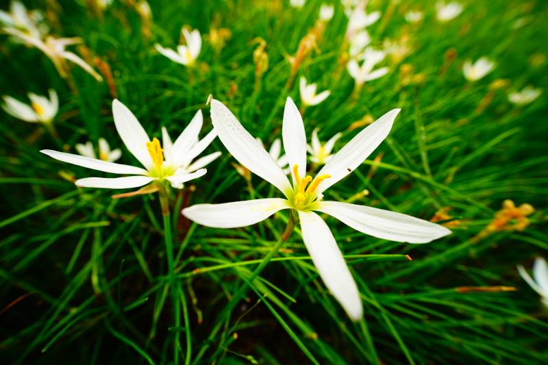 葱莲绿草丛中绽放