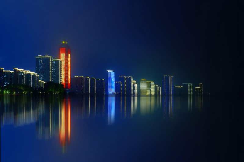 夜色城市倒影芜湖滨江公园