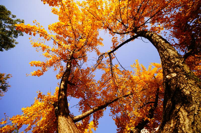秋树金叶映蓝天