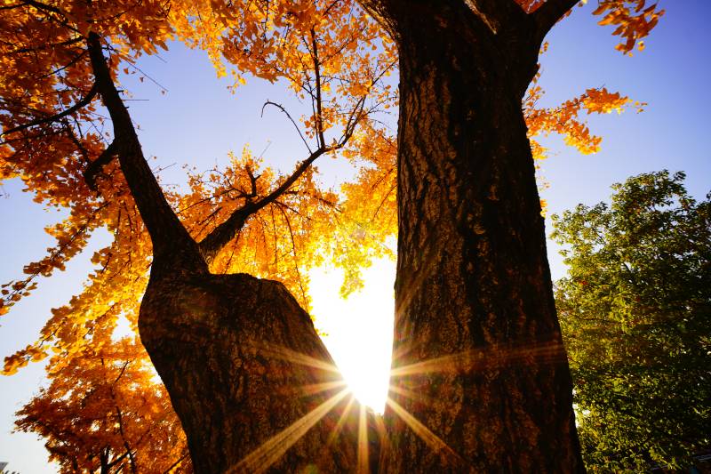 秋日树影 阳光穿透