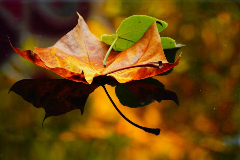 秋叶落水 静谧秋景