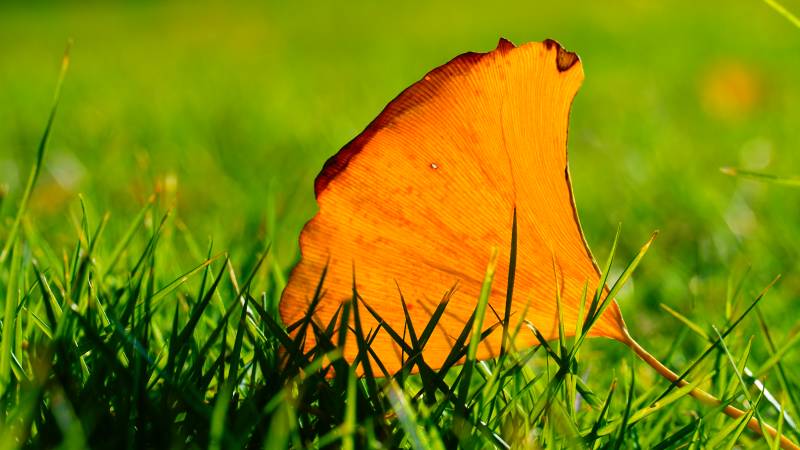 秋叶静卧绿草间