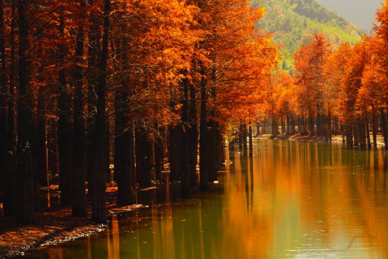 秋林倒影湖光位于皖南川藏线宁国市