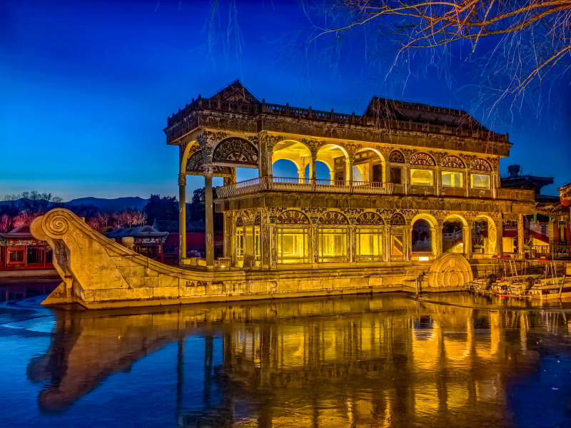 颐和园十七孔桥 夜桥映水 金光闪烁