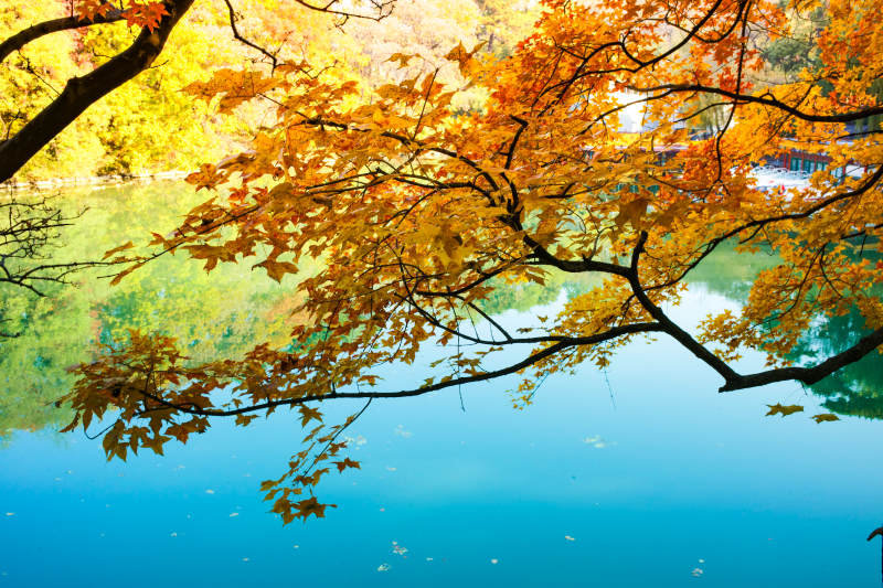 秋叶映湖