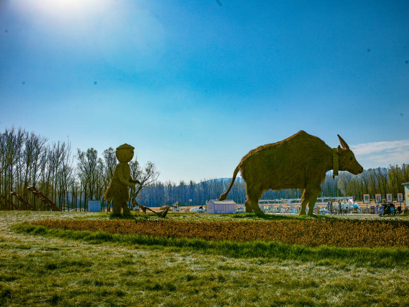 北京海淀稻香花海—草雕牛童耕田图