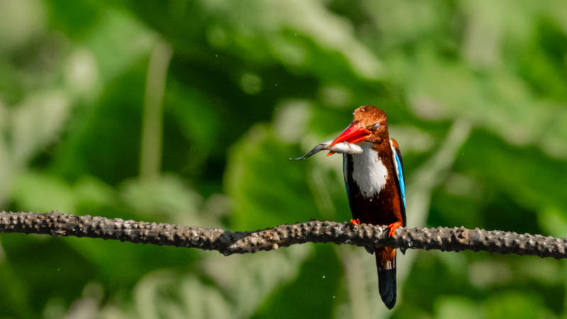 白胸翡翠捕食瞬间