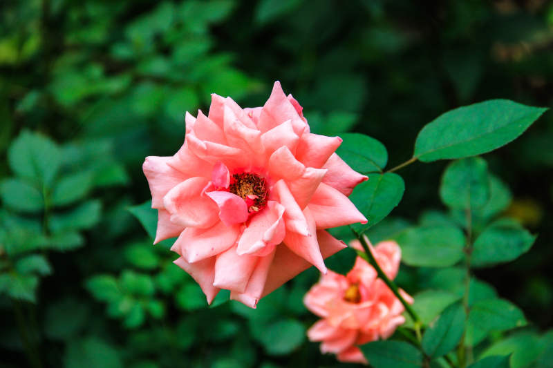 粉色玫瑰绽放于绿叶间